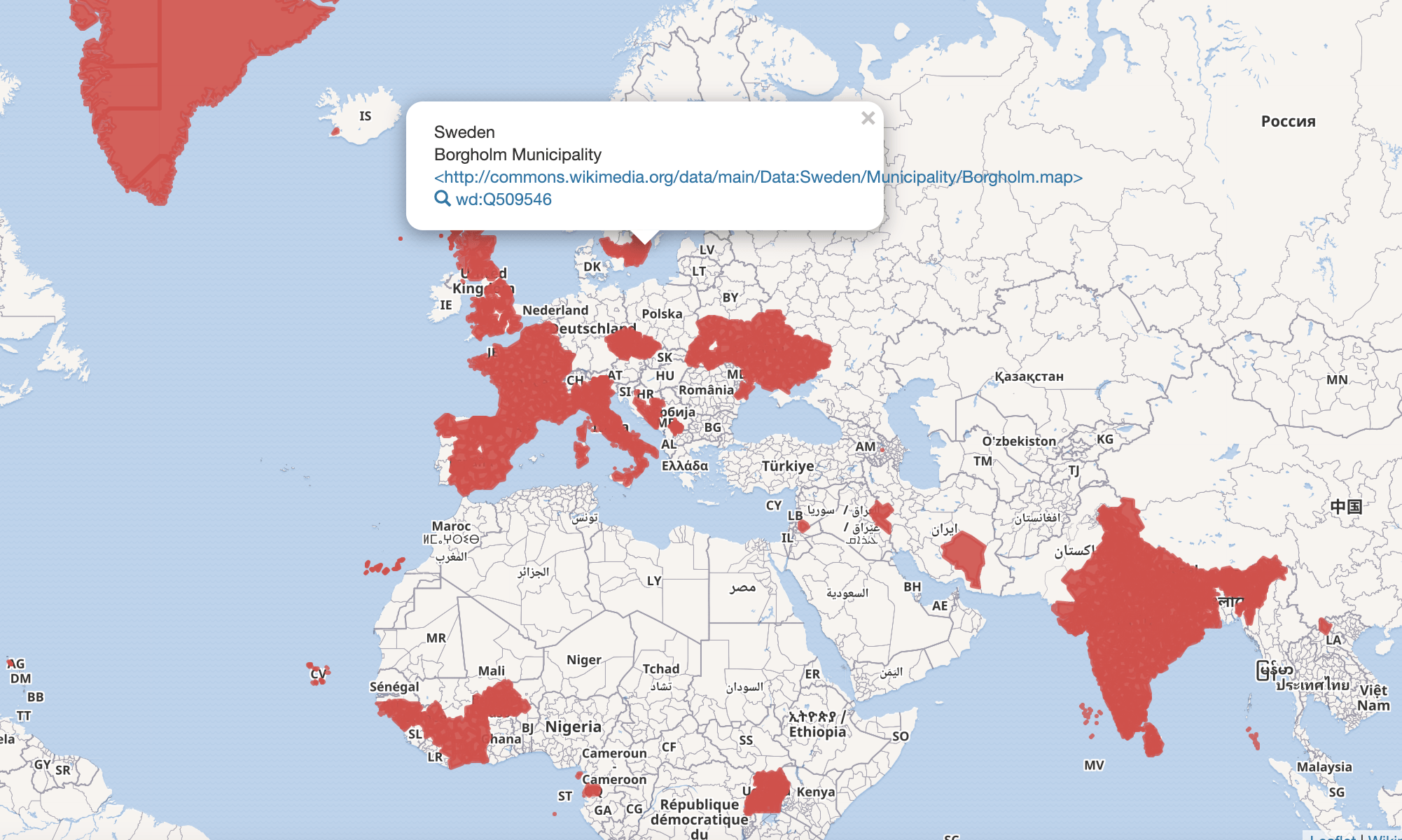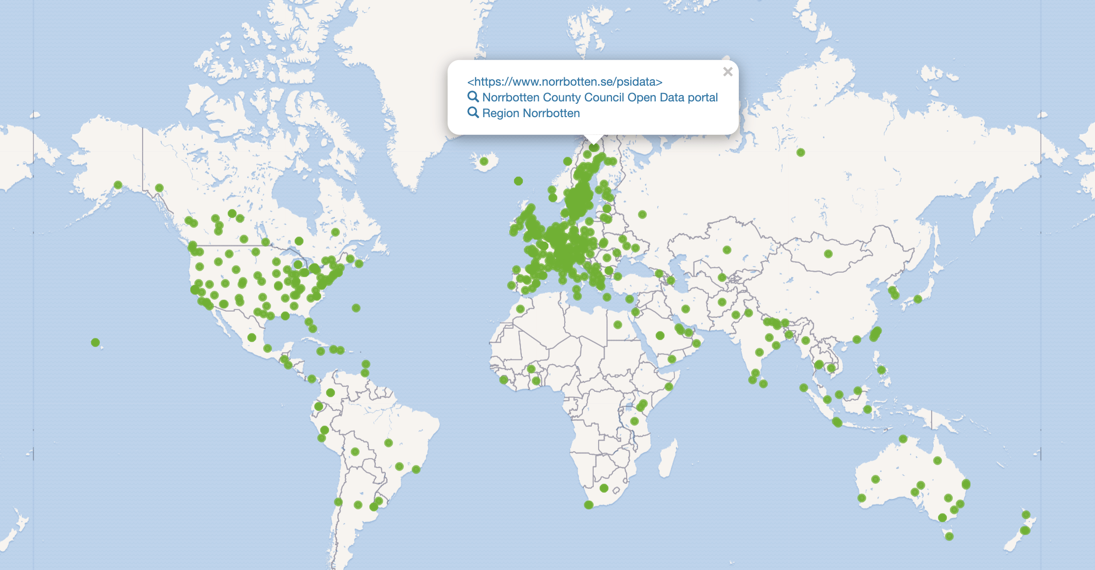 - 1692 av dessa objektet har P3896 som är ytan --> vi kan visa en karta över objektets utbredning (saknas mycket i Sverige) dvs. skulle vi kunna få bra data så har vi en infrastruktur som är enormt spännande och skalar snyggt till hela världen....