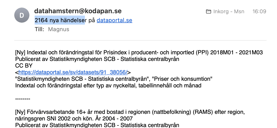 Jag är lite rädd att en organisation som DIGG inte lyckas anställa folk som är "data scientist" och vill jobba med data och skapa ett svenskt ekosystem.... utan fokus blir mer att leverera en pdf och inte göra skitgörat som det är att styra upp och tvätta data och ha en prioriterad backlog. Att DIGG på 2 år skapat ett dataset kanske visar denna Digitala brist på vision..... kollar man vad som ramlat in enligt datahamstern var det 2164 uppdaterade dataset nu senast gissa om detta 100000 dubblas om vi får fart på kommuner och myndigheter och att sitta med fritextsökning funkar inte.... Wikipedia insåg detta 2012, Google 2012 ....