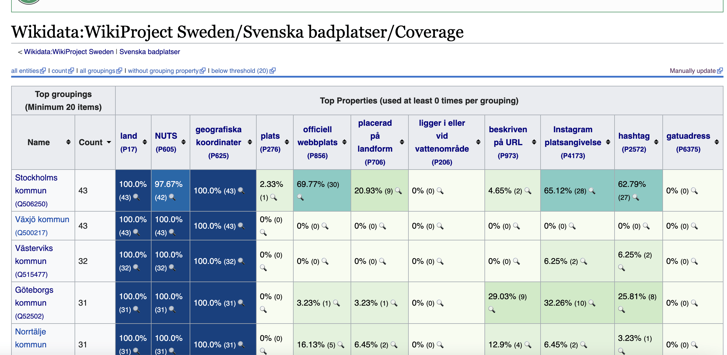 OT Exempel på verktyg Wikidata har för att kolla kvaliten på exempelvis Svenska Badplatser länk känns också saker DIGG borde ha i sin portfölj för att styra upp Öppen Data och kunna se var det behövs bättre data kvalitet, nu verkar man lyssna på EDP som räkna antal uppladdade dataset...