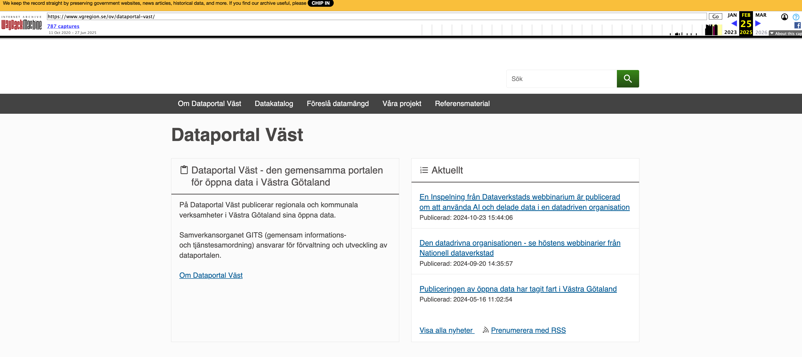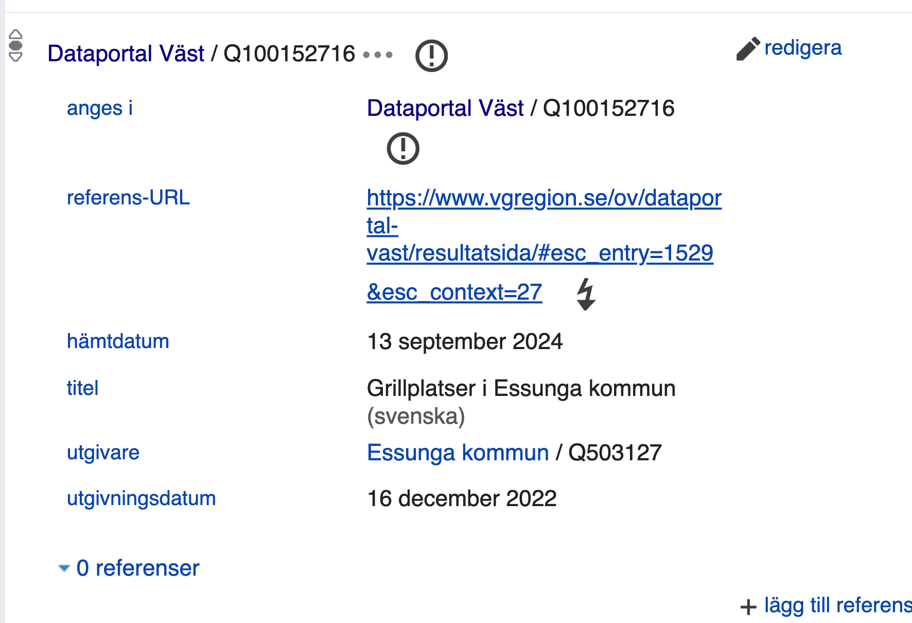 Här har du Wikidata objekt som länkar " Dataportal Väst (Q100152716)" Special:WhatLinksHere/Q100152716 Jag gjorde bara ett par stickprov, men om man gör arbetet på rätt sätt använder man persistenta identifierare som vi kan länka till. Då kan man, när databaser eller liknande flyttas, helt enkelt styra om de persistenta identifierarna i stället för att bryta länkarna.