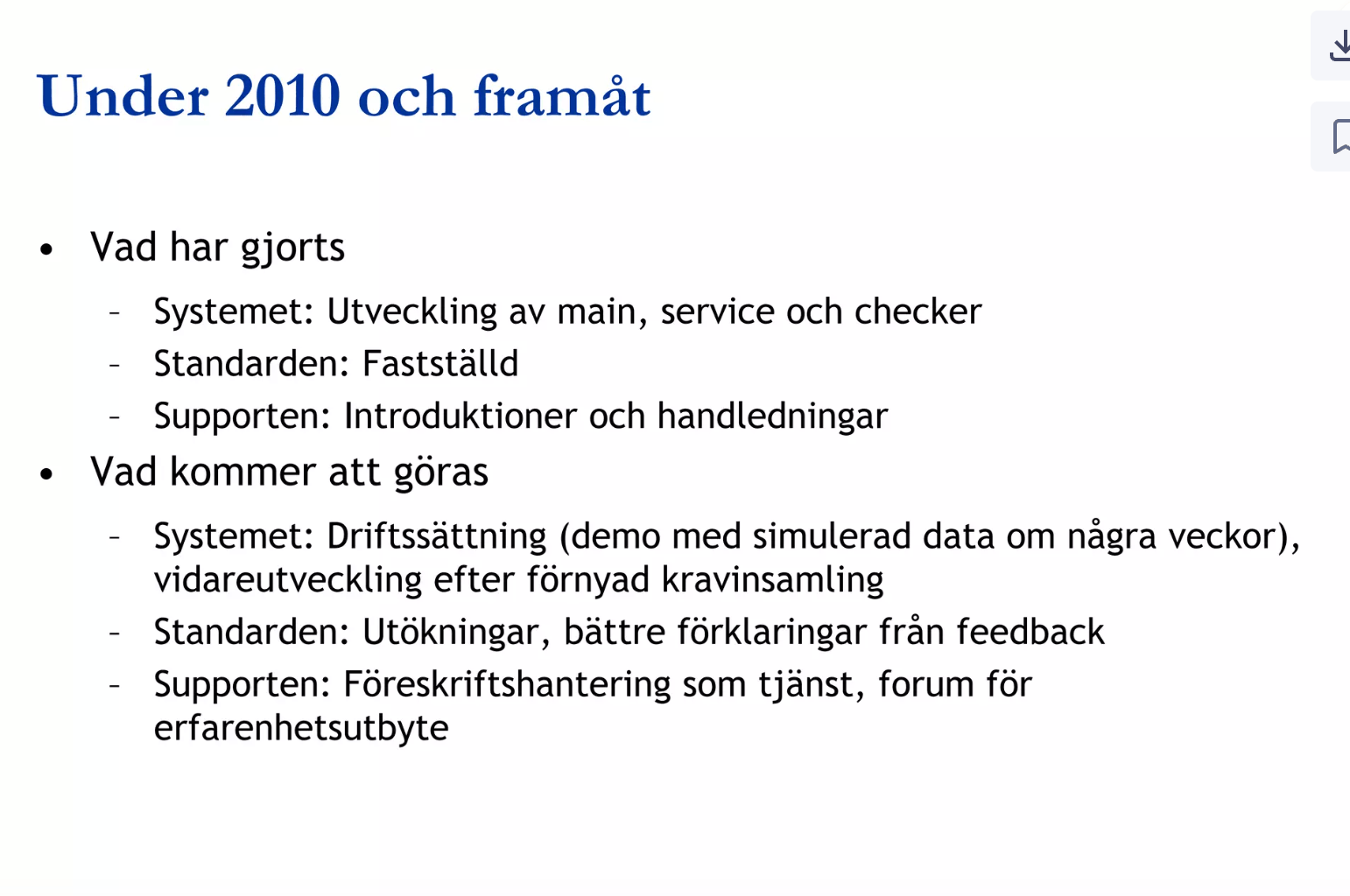 - SFS 1999:175 startade innan Google grundaders och presenterades i denna video 2013 april 12 som ett öppna data projekt som startat 1999 och nu hade bara några år kvar