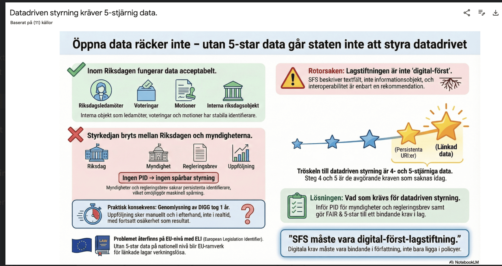 Tillbaka till ämnet känns galet att alla projekt (NSÖD, Dataportal...) myndigheter ( Riksarkivet, DIGG, SCB) inte reagerat på SFS 2007:755 det tar Notebook LM 2 minuter.... tror inte vi förstår hur stort problem vi har....
