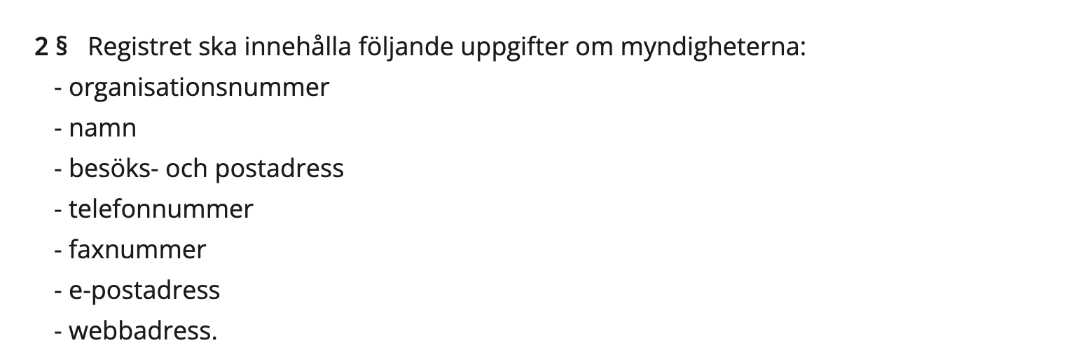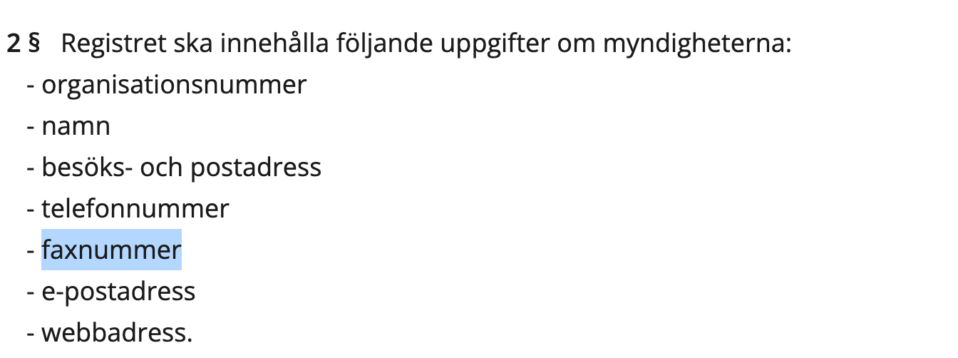 ) ser man att faxnummer saknas för majoriteten av myndigheterna.Detta väcker en mer grundläggande fråga: