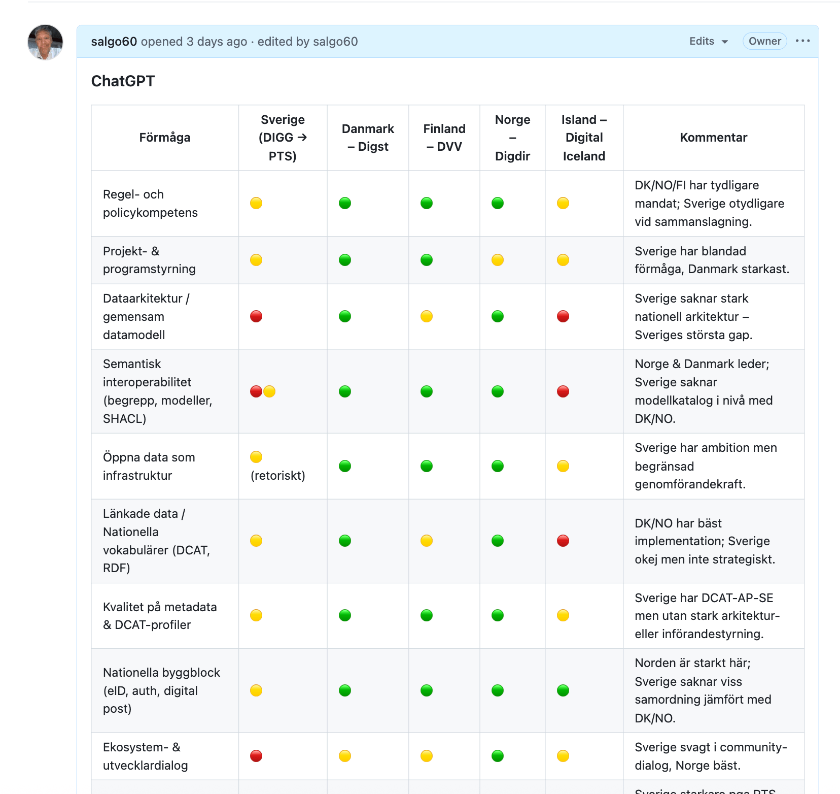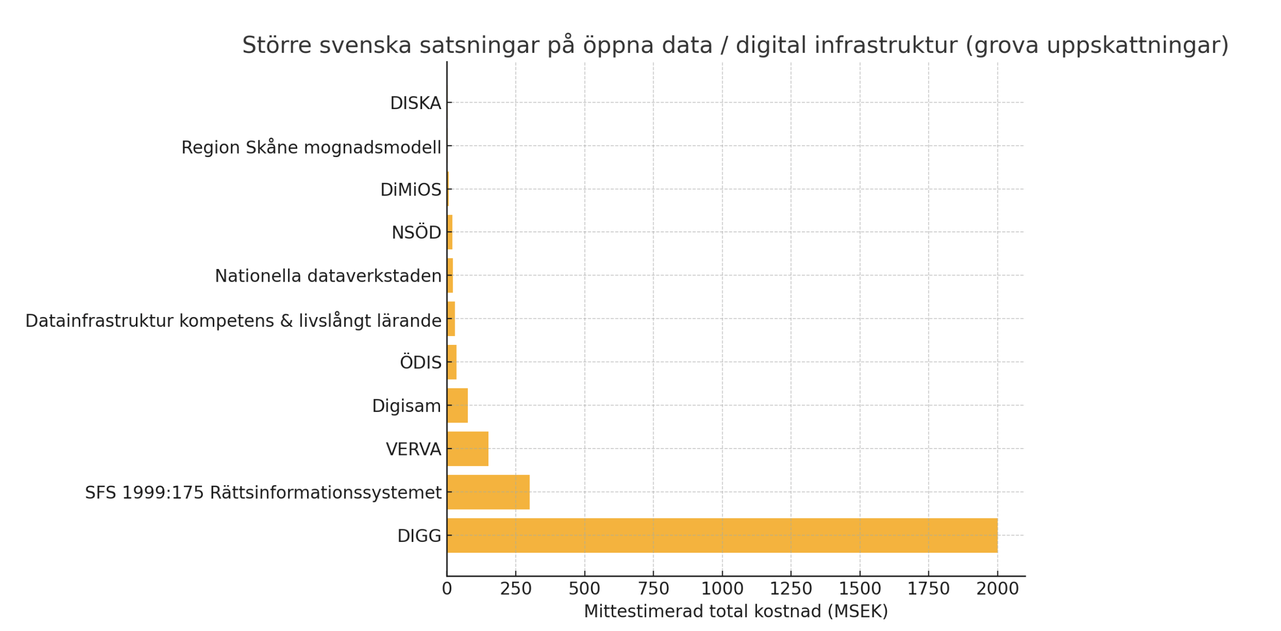 Issue #1538 visar hur stora belopp hamnar hos konsulter som levererar PDF-specifikationer i stället för fungerande datatjänster NSÖD, Dataverkstaden... . Det saknas styrning som säkerställer att offentligt finansierade projekt faktiskt ökar Sveriges nationella interoperabilitet och API-förmåga.4. DIGGs egen förklaring – och varför den inte räcker