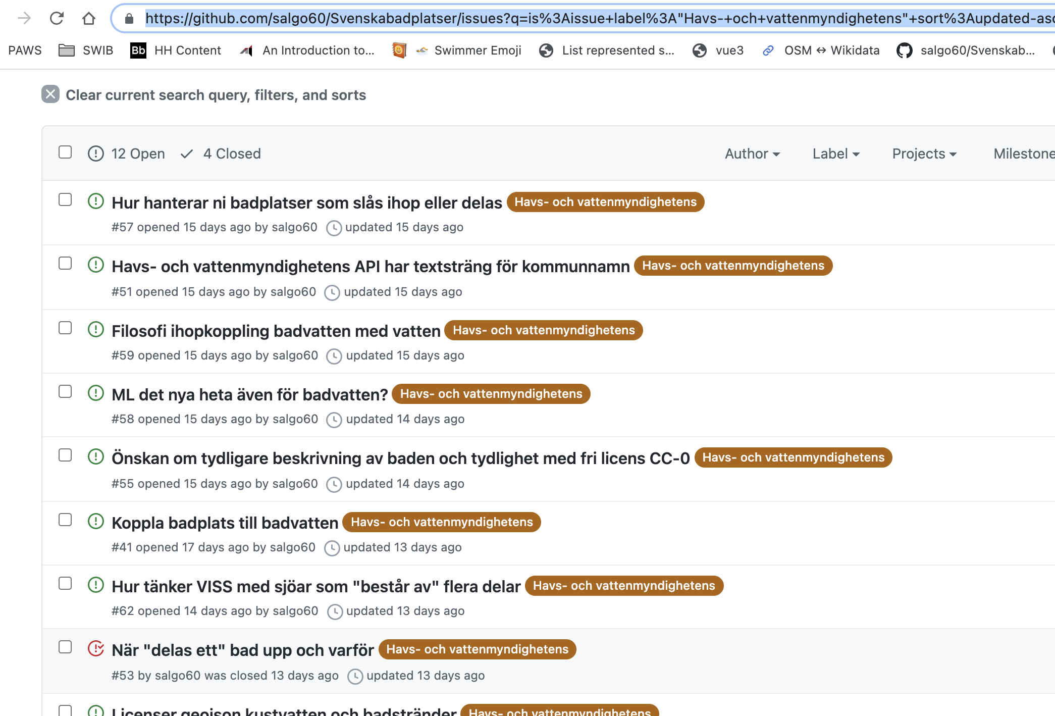 - se issues i mitt repository som berör Havs myndigheten