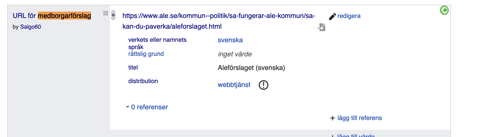 I Wikidata har vi kopplat "medborgarförslag" till de kommuner vi hittar det i men ser