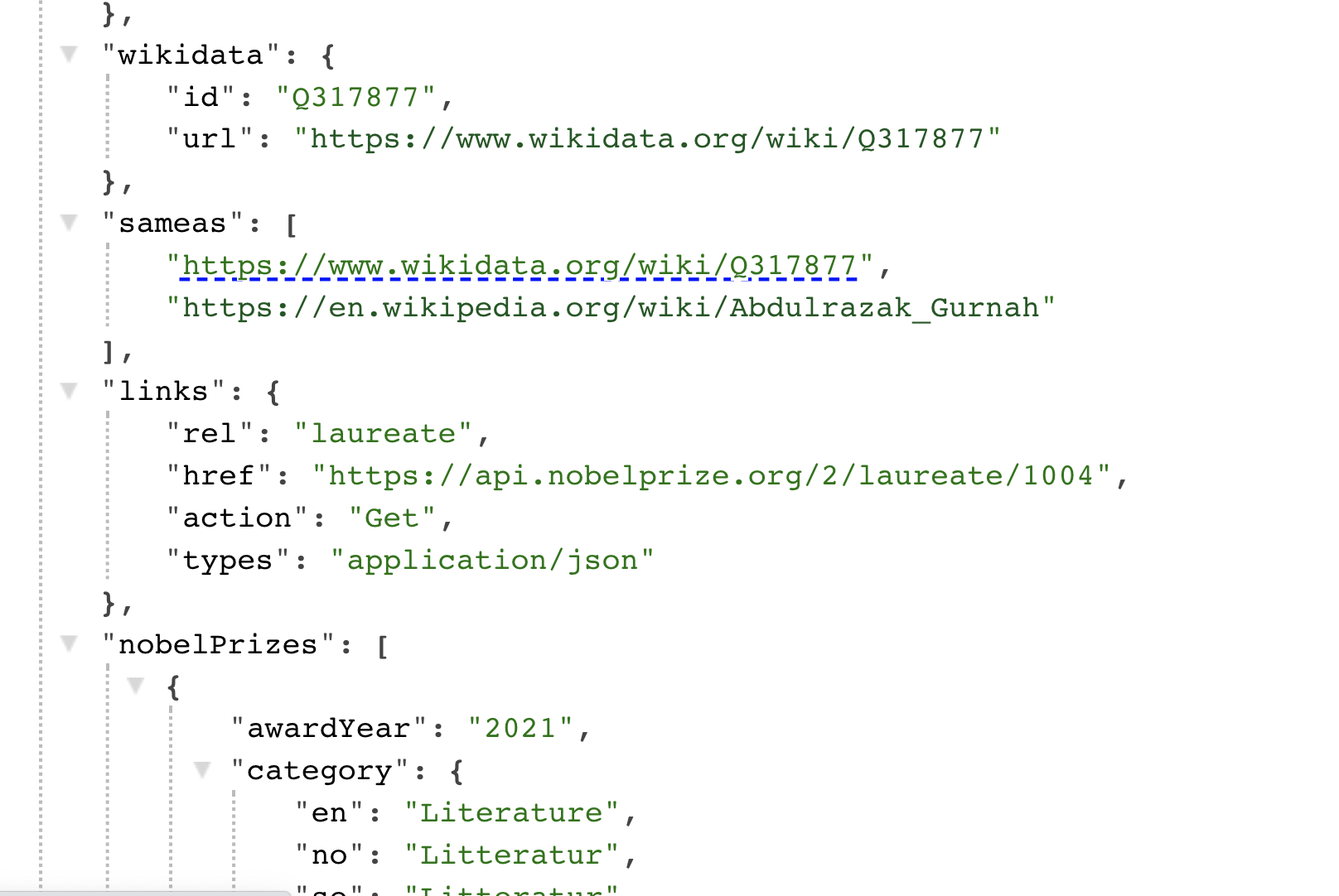 Lite off topic hur snyggt dagens Nobelpris släpps i ett API där personen har id 1003 med samma som Wikidata Q5237001