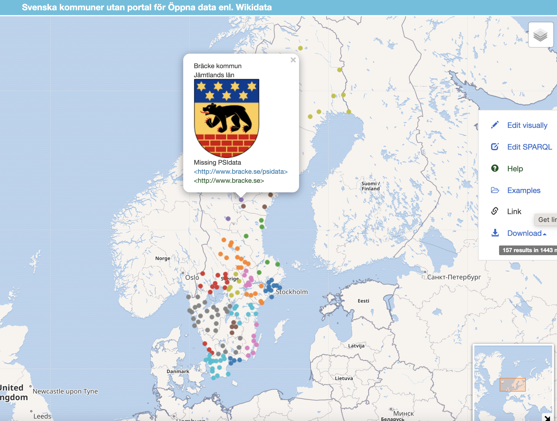 Karta med 156 kommuner som inte ens kan peka på Kolada datat för kommunen.... eller peka på Wikipedia som förklarar vad Öppna data är