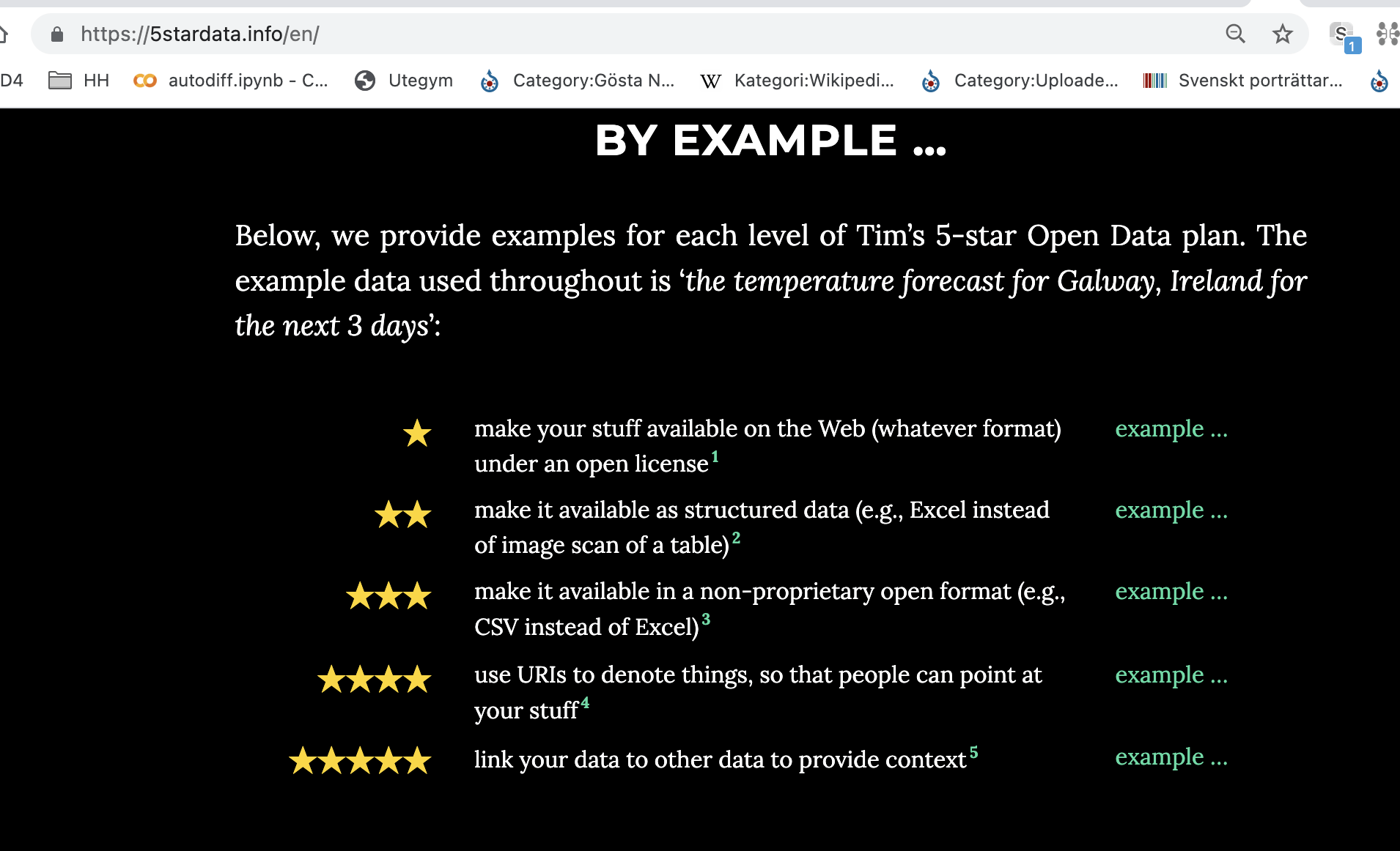 Ett exempel är typen av leder som naturvårdsverket har i sitt data här, se tabell 5 i denna pdf. Denna data delas inte bäst i en PDF, utan när jag vill maskinläsa datan, så önskar jag att lederna istället pekar på en "thing" som jag kan begripa mig på.