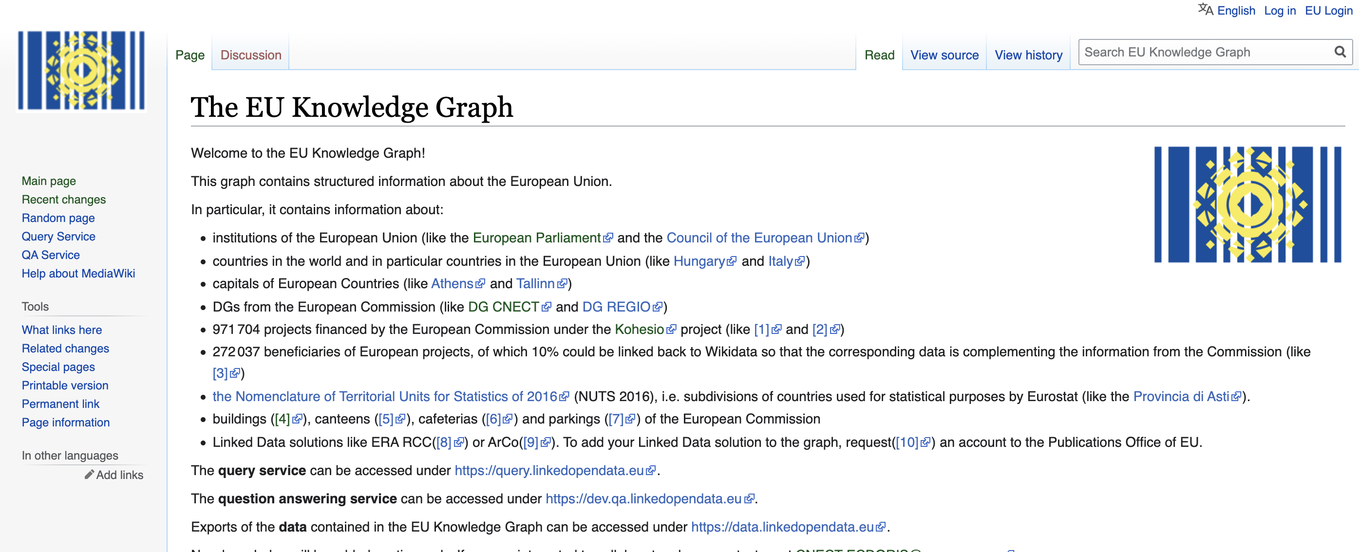 EU kör en wikibase se artikel "Wikibase as an Infrastructure for Knowledge Graphs: the EU Knowledge Graph" se linkedopendata.eu "The EU Knowledge Graph"