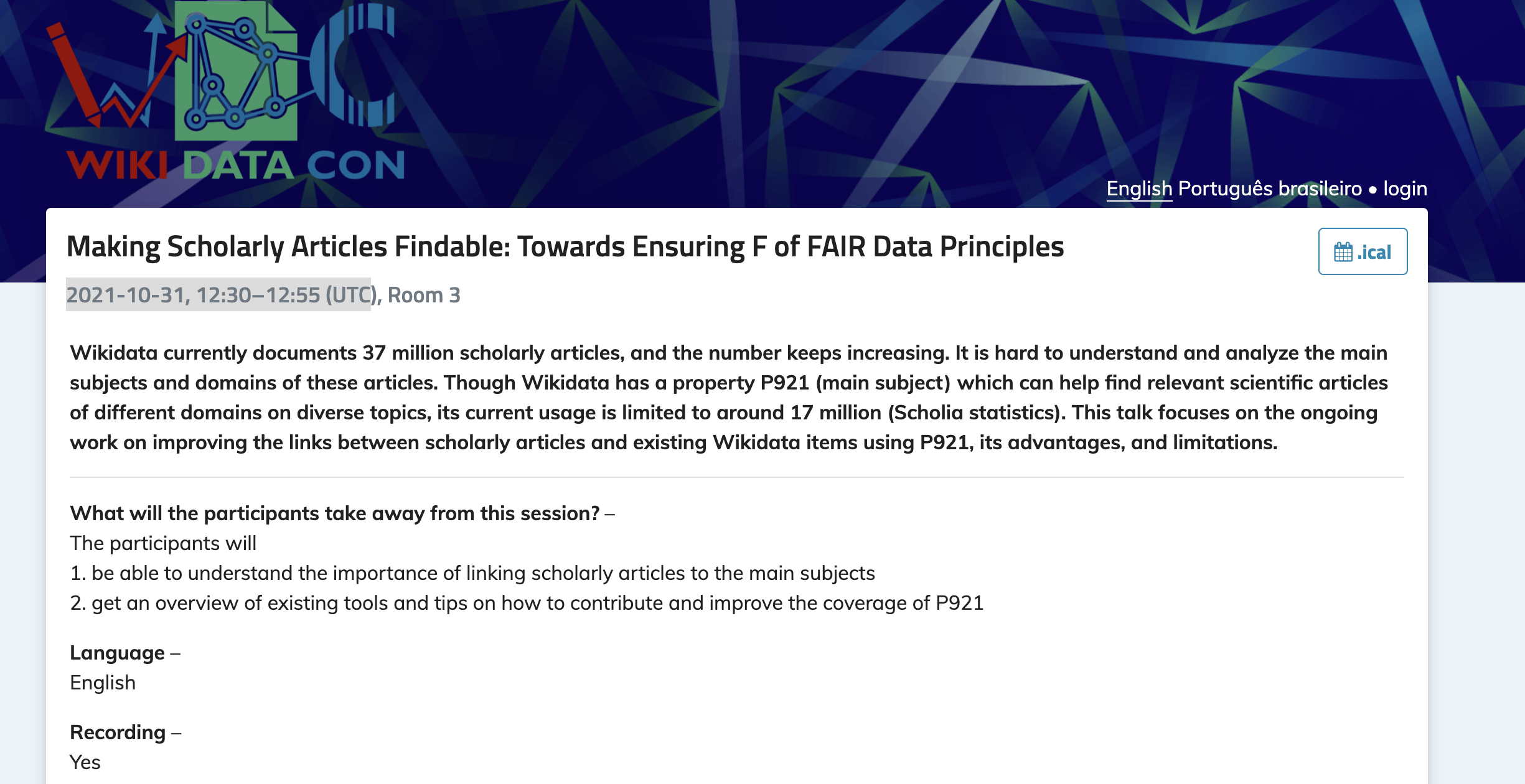 - Making Scholarly Articles Findable: Towards Ensuring F of FAIR Data Principles 2021-10-31, 12:30–12:55 (UTC