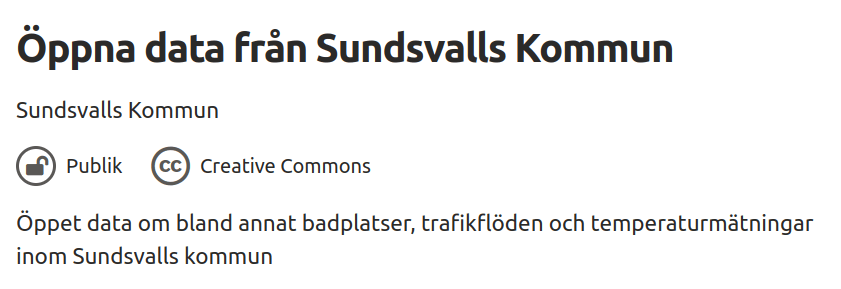 Jag tittade på Sundsvall fina API i dataportalen och såg då att det stod Creative Commons i toppen: