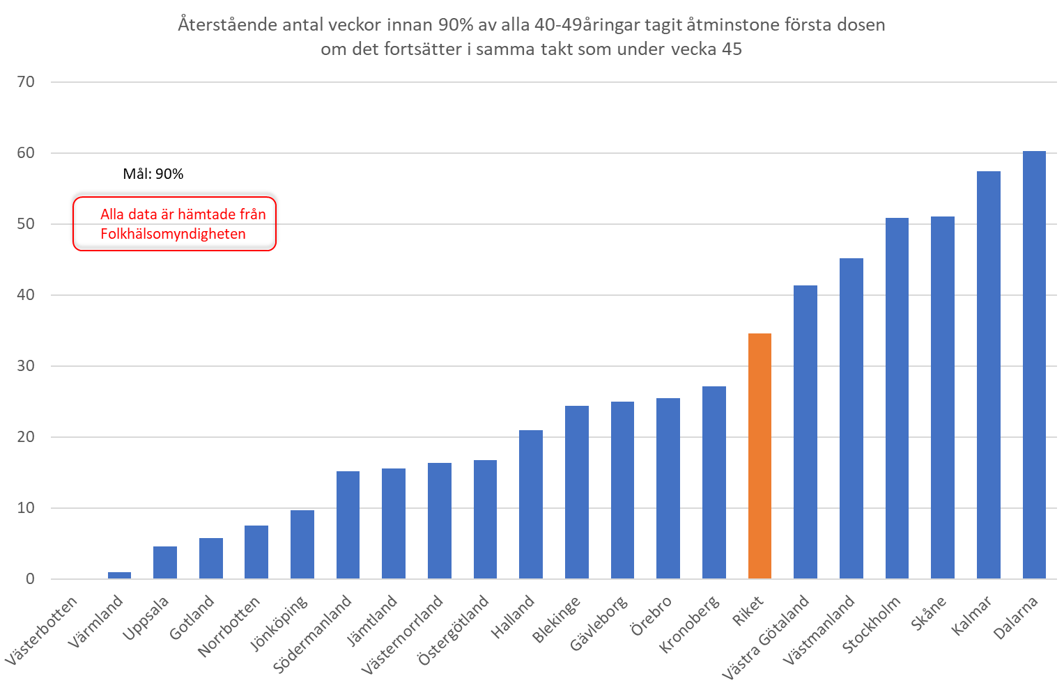 Stora skillnader här också. Och ett Grattis till Västerbotten som nått 90% för den valda åldersgruppen.Det måste finnas massor av såna här exempel. Tänk vilka stora värden som ligger och lurar.