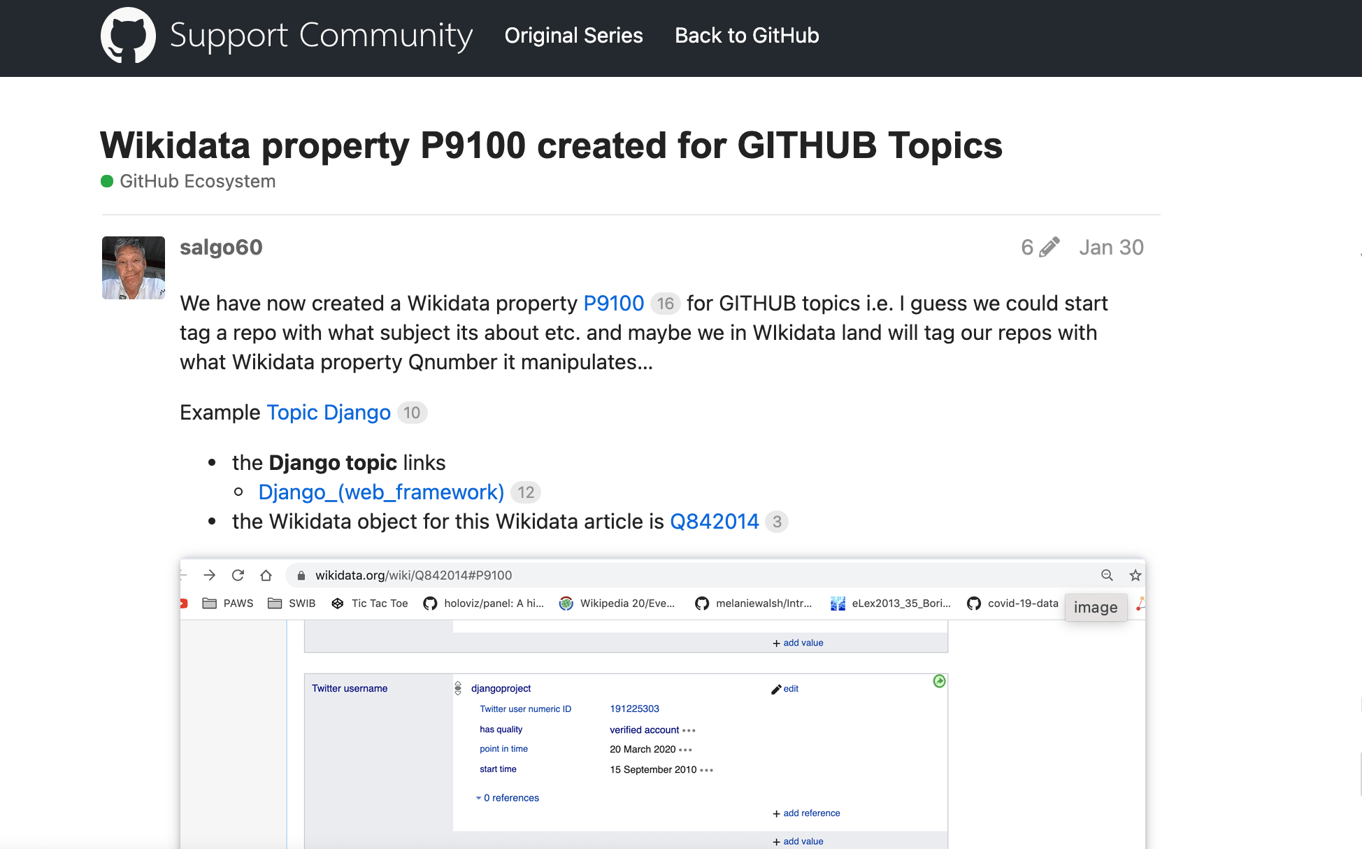 Skrev lite om det på GITHUB community forum.... idag är det ofta forskare som är duktiga på att ange DOI för sina vetenskapliga papper och tillhörande dataset...