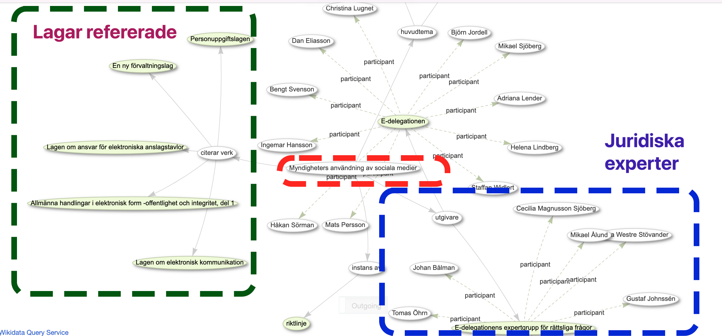Jag skickade ett email till esamverka.se om var deras öppna data finns och om varför dom inte jobbar med Digg och har publicerat detta på dataportalen och/eller har egna API:er.... gjorde en liten snabbtest med att lägga in rekommendationen i Wikidata som Q112766254 / graf och kopplade den till några lagar som den refererar....