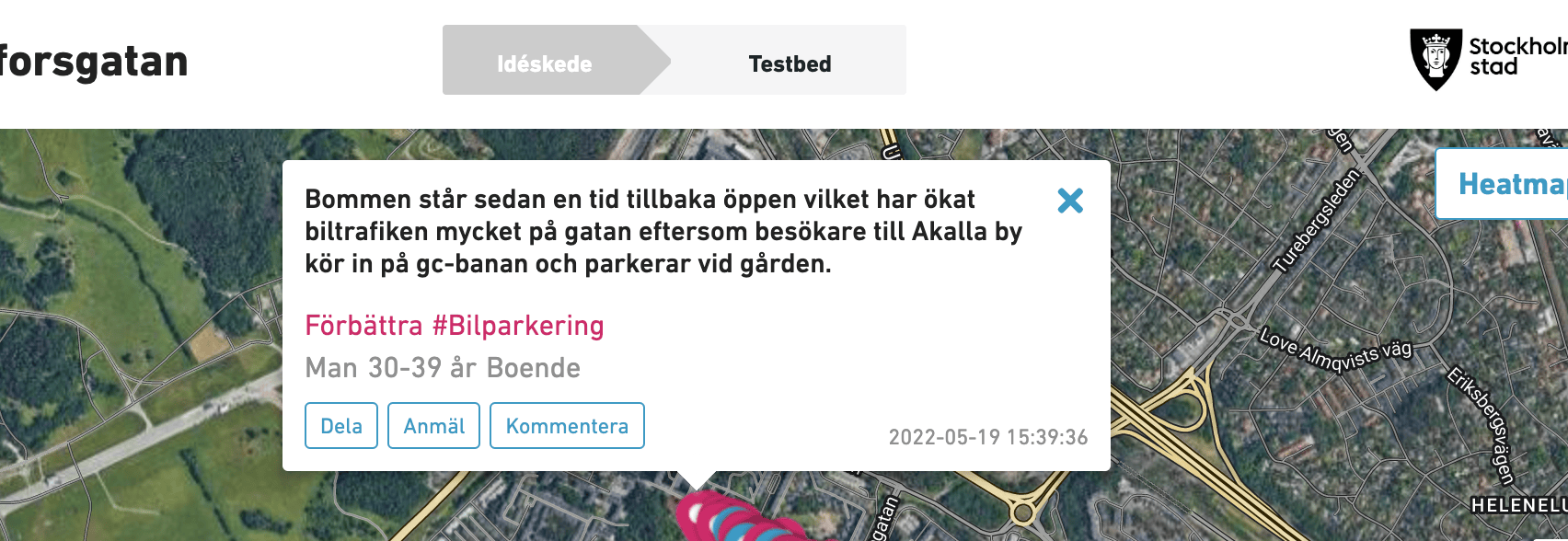 Kolla hur Stockolms nu kopplar kommuninvånares feedback till plats på karta se och lär