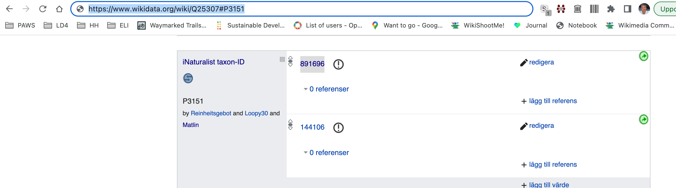 - Wikidata Pica Pica ) = Q25307 samma som iNarturalist https://www.wikidata.org/wiki/Q25307#P3151 = taxa/891696