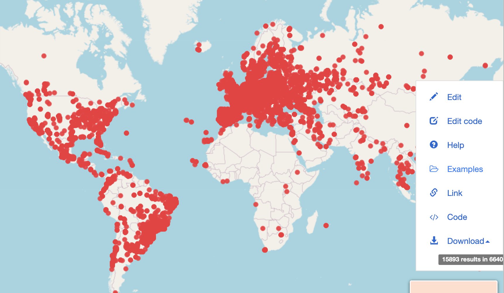 - samma med EN fråga hos Open Street Map utegym -> 15000 utegym - fler OSM frågor