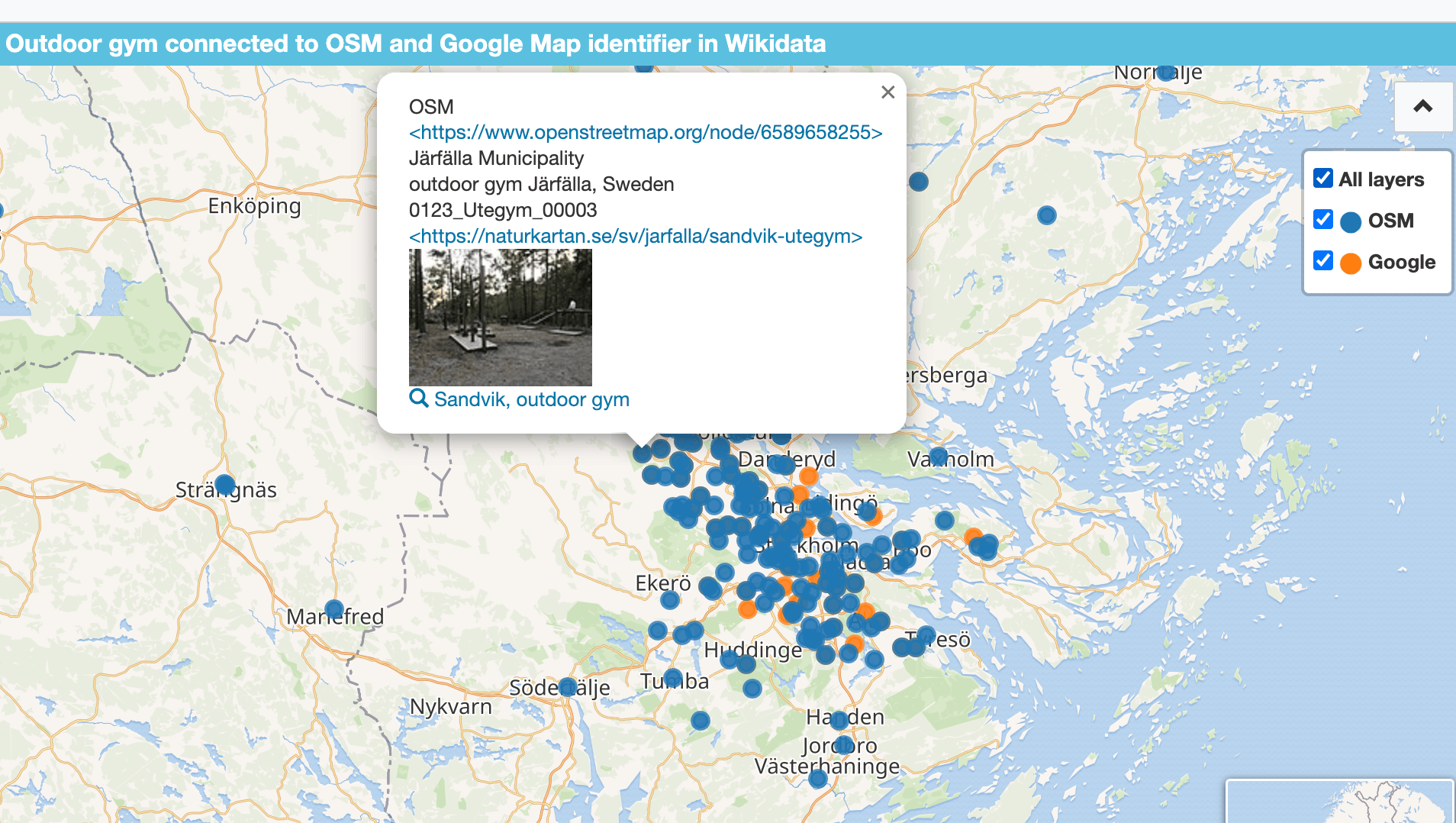 Notebook att stämma av Utegym i Wikidata med Open Street Map