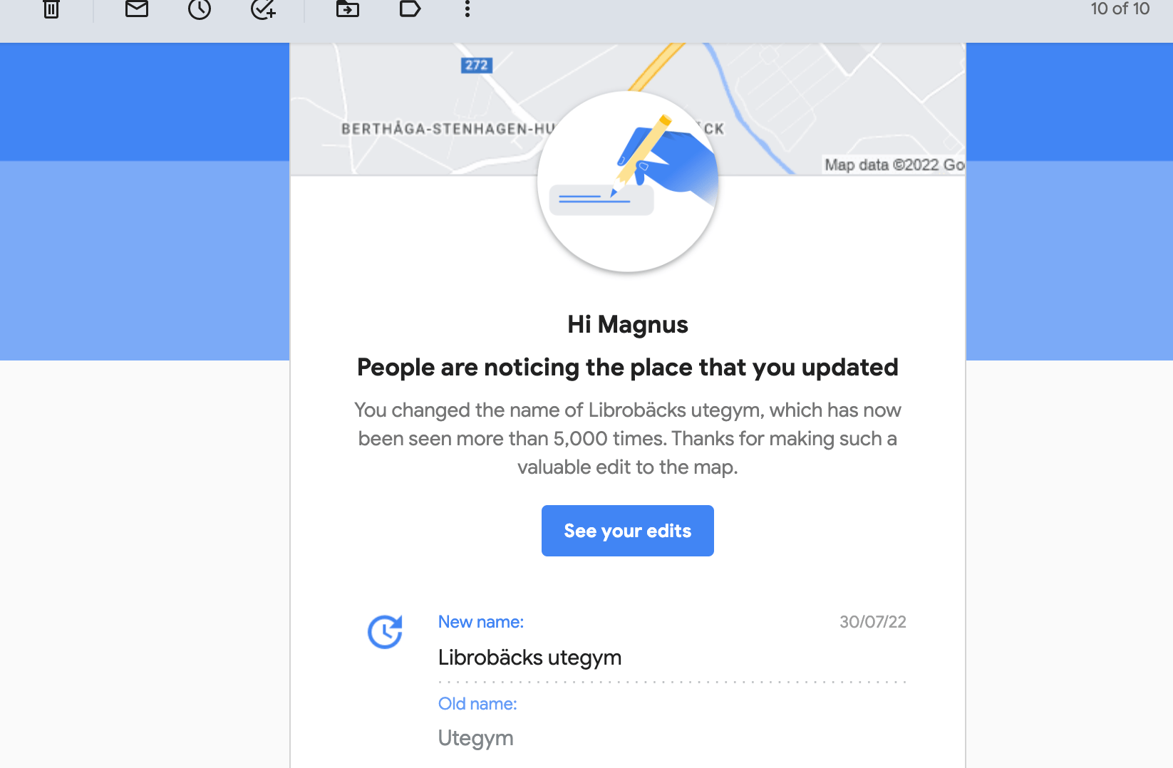 Feedback idag att ett utegym jag skapa på Google map setts av 5000 personer - Librobäcks Utegym - WD Q107405323