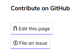 Den första knappen "Edit this page" går direkt till koden för den sidan på GitHub, den andra "File an issue" skapar ett ärende med info om vilken sida det gäller förifyllt. Du kan se ett exempel här. -