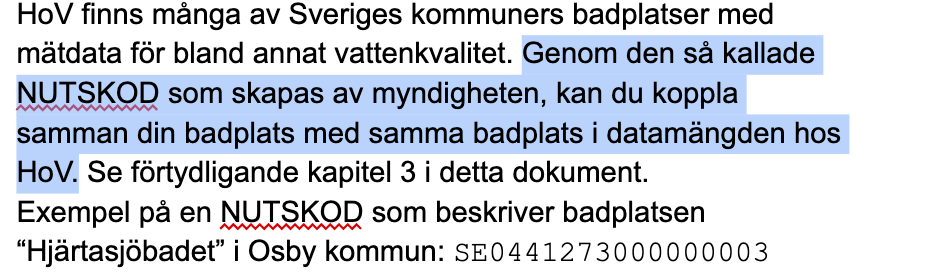 Lägger BathingWaterIdentifiern i ett fält som dom kallar nutsCode vilket är något annat se Wikipedia