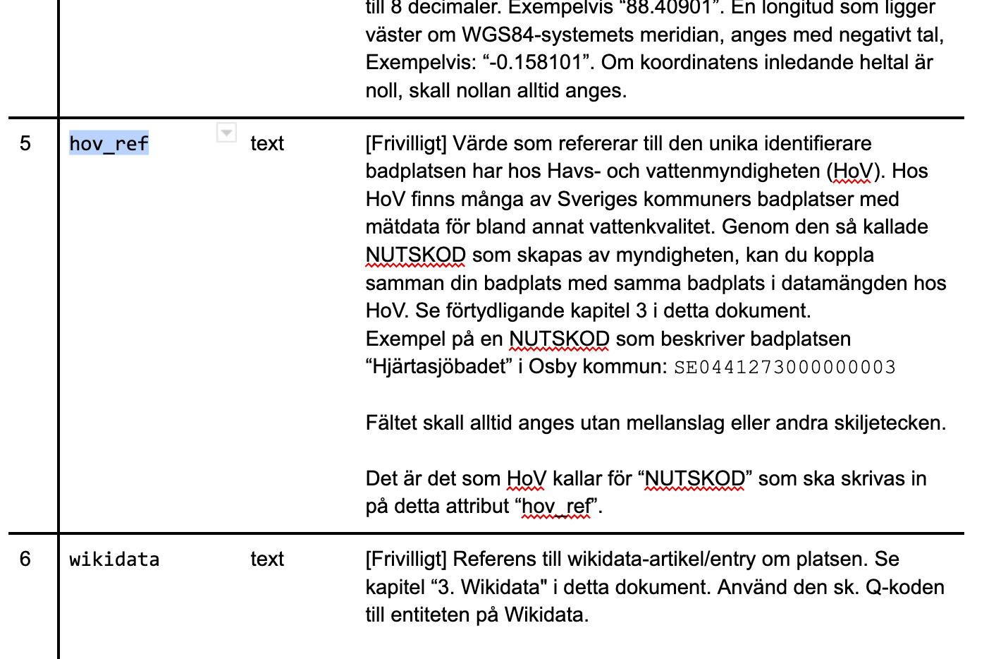 - nu skapade man ett "nytt fält" hov_ref som innehåller Havsgeggan..... och bara för att strula till det mera så anges det som frivilligt.... finns badvattnet hos Hav och EEA så skall man ange det...
