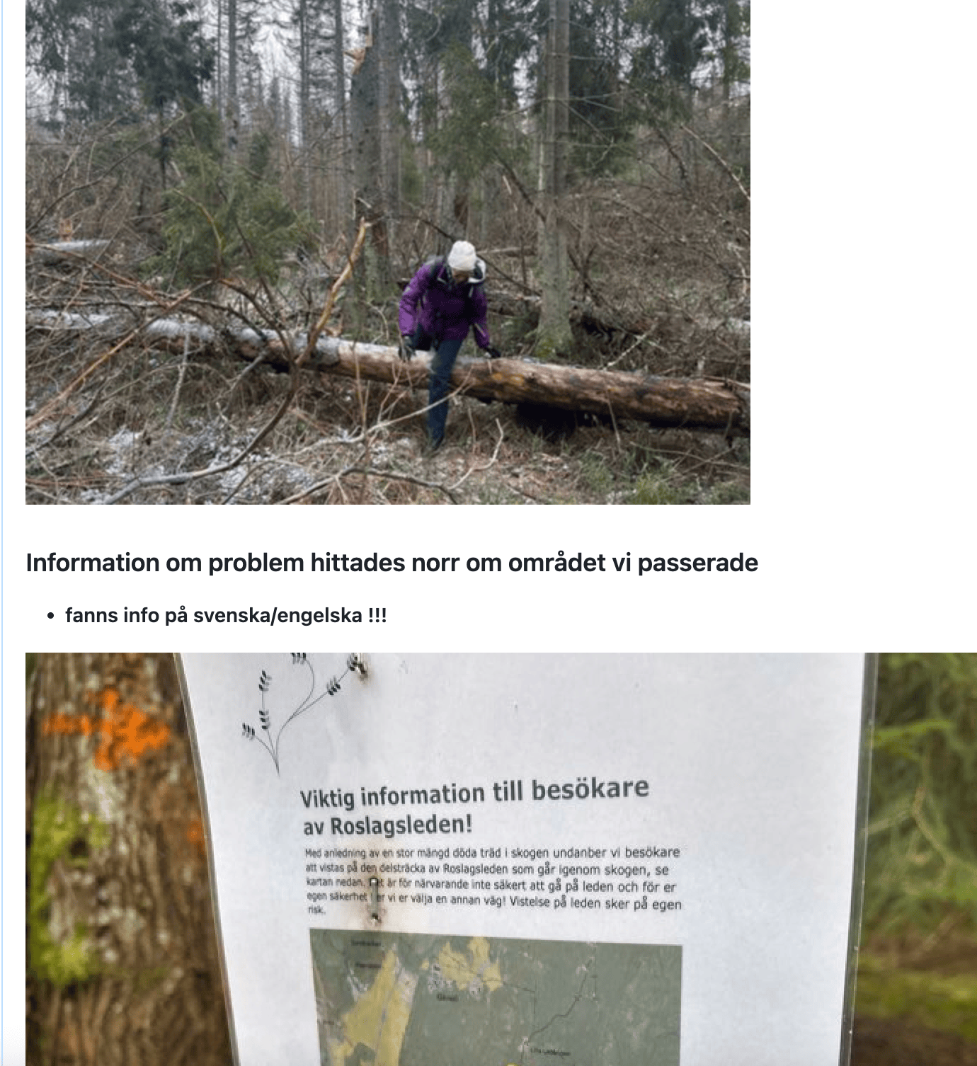 "SAT Nämdö "Rapportera nedfallna träd på Vita Stigen / SAT Nämdö"