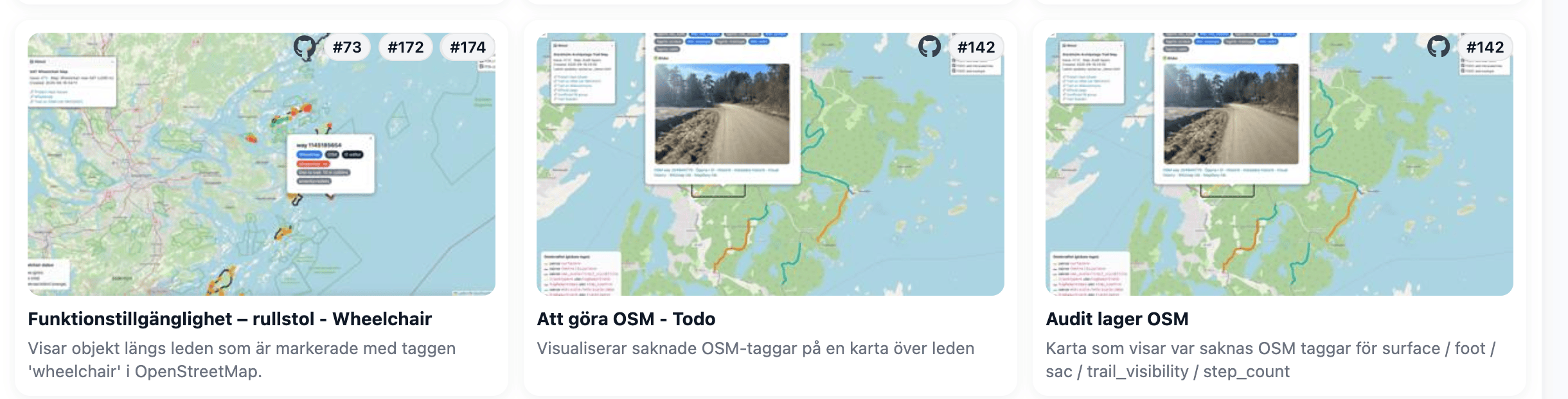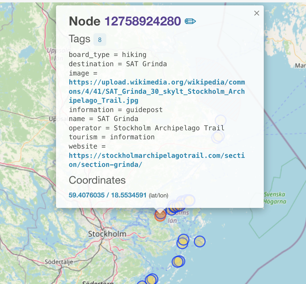 - Open Street Map koppling se Stockholm_Archipelago_Trail/issues/43