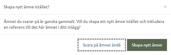 När man svarar på ett gammalt inlägg får man ett förslag om att istället skapa ett nytt ämne och automatiskt inkludera en referens till det ursprungliga ämnet.