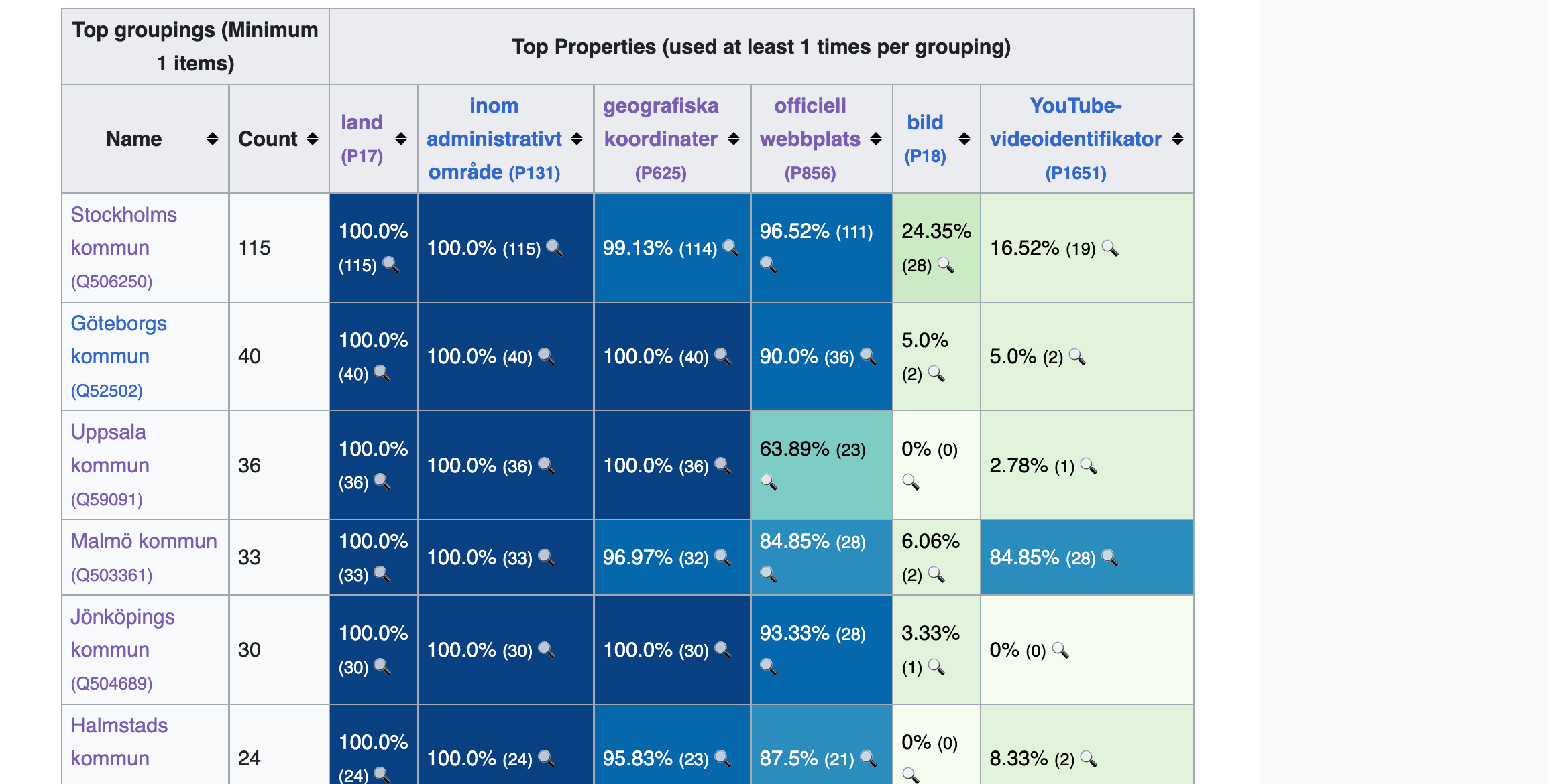 @Maria_Dalhage kolla mina Wikidata ytor där har jag skurit per land och för Sverige kommun och vilka egenskaper vi har för detta