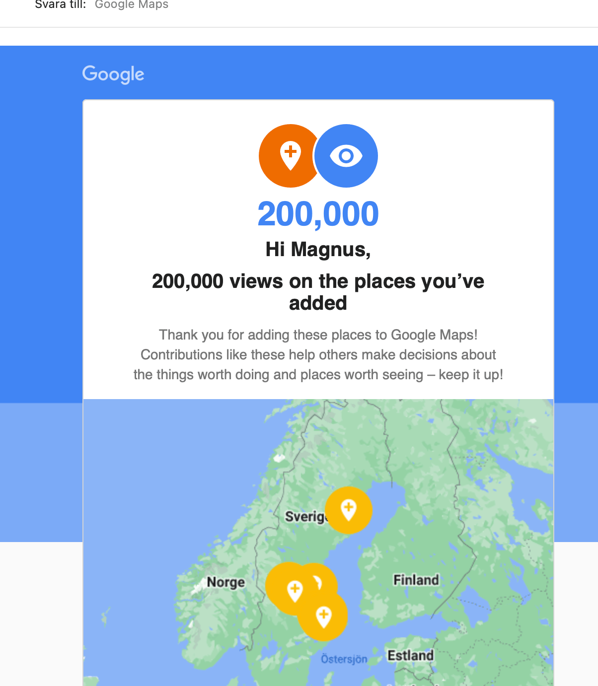 Från Google map får jag tillbaka antal visningar (ej per utegym utan i klump på dom jag skapat)