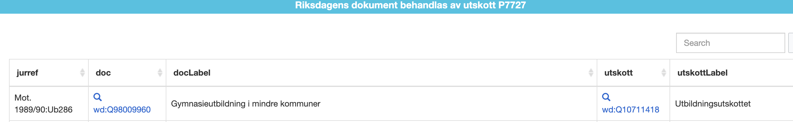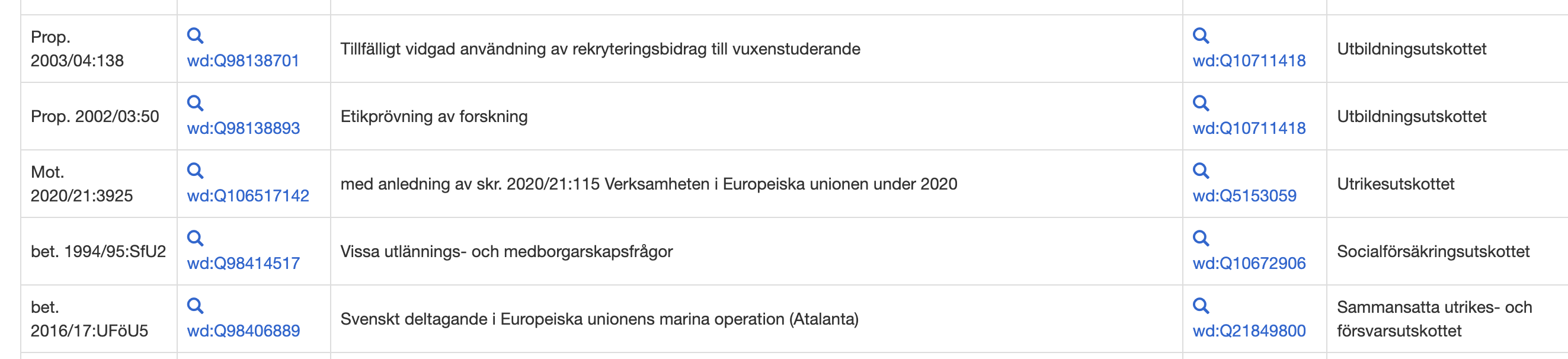 se exempel hur för Riksdagens dokument identifierar vi behandlande utskott med en persistent identifierare i Wikidata...