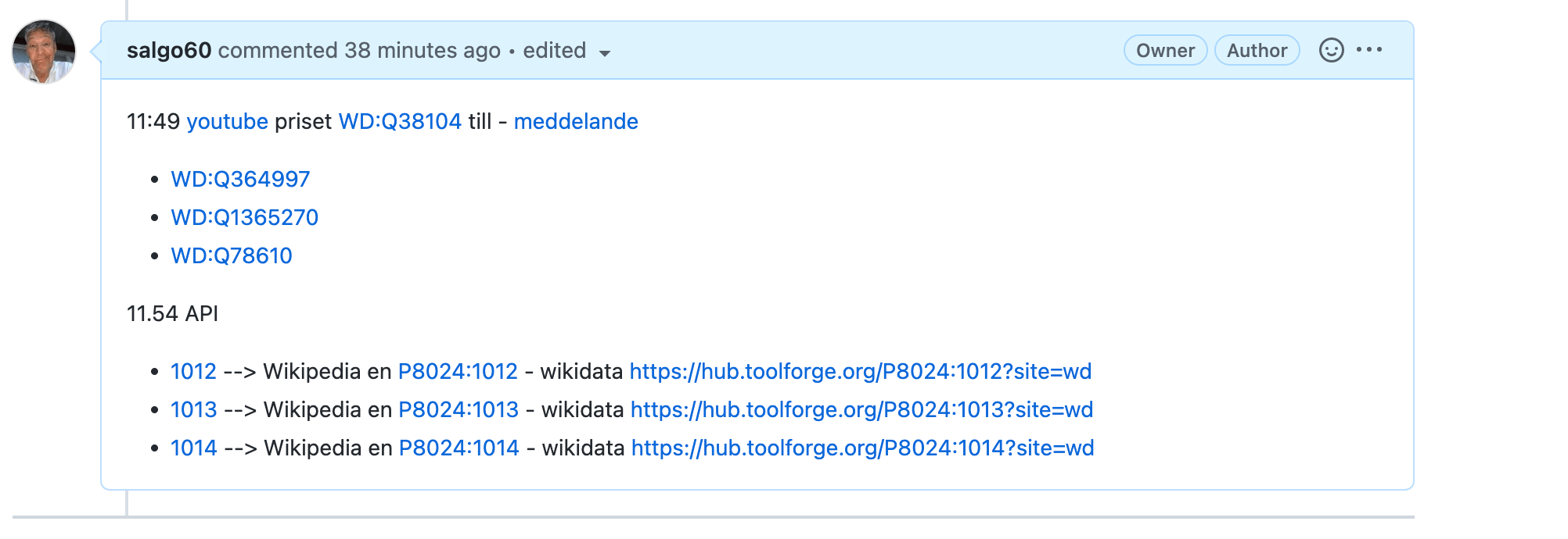 @Magnus-Sälgö sa i Hur vill Ni som använder datamängder kunna bidra med Wikidata Q-koden?: