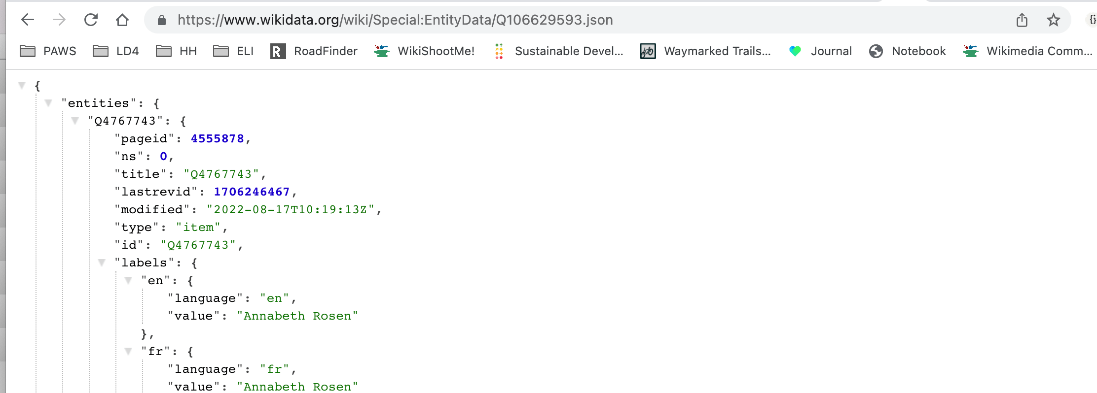 Problemet här är att om man har en Wikidata identifierare så kan man inte vara säker att det inte är samma objekt som ett annat eftersom den kan ha mergats.... kan enkelt kollas med https://www.wikidata.org/wiki/Special:EntityData/Q106629593.json --> då redirektas till Q4767743