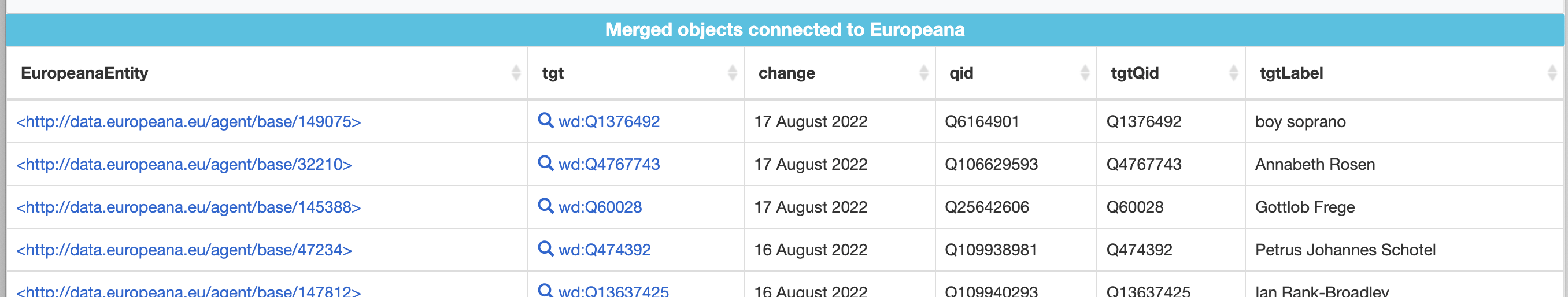 @jonass ett "problem" vi har i Wikidata där poster mergas enormt mycket som är lite relaterat se SPARQL fråga vad som mergats senaste veckan som är kopplat till Europeana = 63 poster