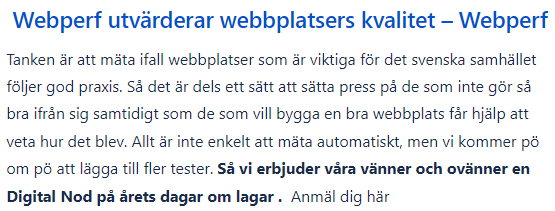 @Maria_Dalhage Tack för tipset! Jag har dock inte en aning om vad en "Webperfare" är och jag blir inte så mycket klokare av sidorna om "Webperf-community". Är dagarna gratis för alla, "Webperfare" eller inte?