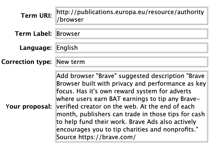 - Föreslå ändring av data / rapportera fel