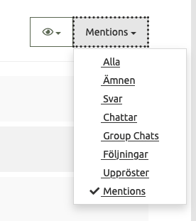 - Möjlighet att göra flerval i notiskategorier (se bild 1 nedan) istället för att man väljer en kategori dvs möjlighet att visa både Mentions och exempelvis svar.