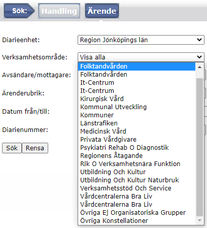 Det är bra att det finns med verksamhetsområde i exemplet Jönköping, men det är lite för grov nivå. Bra också att ärende och handling är länkade via nummer. Sedan undrar jag varför vissa verksamhetsområden är dubblerade, t.ex. två Folktandvården som ger olika antal resultat?