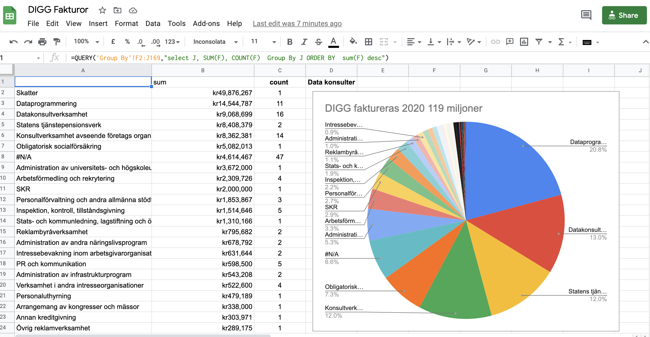 DIGG har nu släppt 2 dataset där det ena är deras "Leverantörsfakturor 2020" datasets/760_1544