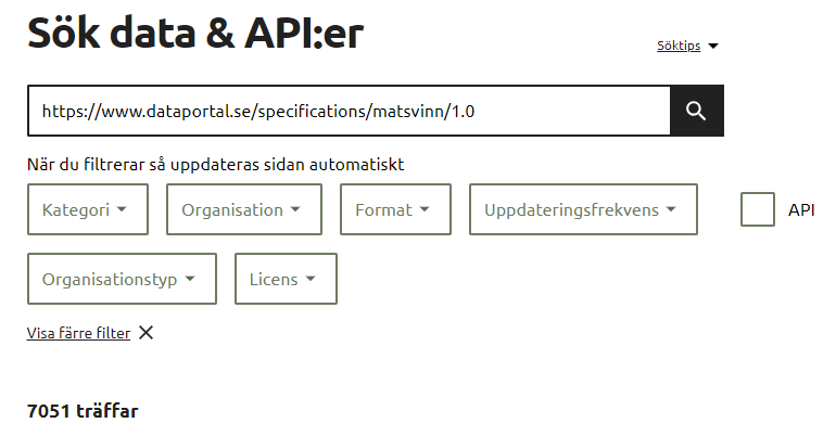 Sökning på specifikationens URI ger 7051 träffar, vad beror det på? (Förstår inte heller vad API-rutan gör för något?)