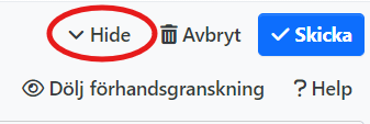 Jag skrev ett utkast och valde "Hide" för att fortsätta senare. (1)