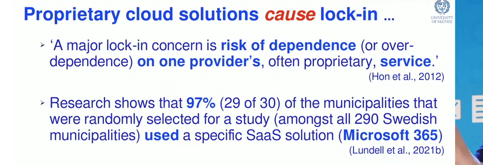 Keynote: Recipes for getting stuck in proprietary clouds: How public sector organisations discriminate against open source software solutions2:26: / 3:07: 41 min
